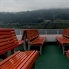 Hier herrscht kein Gedränge, wenn Dampfschiff Uri an diesem, mit Wolken und Nebel verhangenen Vormittag, vorbei zieht. Unten stehen sie dichtgedrängt am Geländer und wollen das beste Photo auf die Speicherkarte platzieren. Und ist die URI vorbei, steht da noch einer im Weg, wenn das beste Photo geschossen wird. Dann wird laut "gepfuttert" und Dampfschiff Uri fährt in aller Ruhe Richtung Nase.