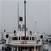 Einige Passanten halten inne, und fragen: Fährt dieses Schiff jetzt ab?