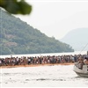 Lange Warteschlangen und 30 Grad im Schatten. Jetzt geht's weiter durch die Gassen, über einen Steg auf den floating pier. Damit nicht zu viele Personen gleichzeitig auf das ohne Geländer im Wasser schaukelenden Pier gelangen, sind pro Stunde höchstens 11'000 Personen zugelassen.