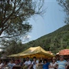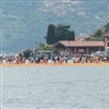 An der Uferpromenade liegt ein Kindergarten. Diese Tage sind noch Kinderspielsachen im Vorhof platziert, aber auf dem Schild steht Carabinieri. Alles ist für die drei Wochen eingerichtet. Auf einer Wiese stehen Verpflegungsstände und heute das Wichtigste, Wasser oder Bier. Es ist heiss, ein Gewitter wird erwartet.