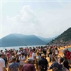 Angelangt auf der Insel herrscht Rechtsverkehr. Ein Gewühl von ankommenden Schiffstouristen, auf dem Pier und an der Uferpromenade spazierende Gäste. Ja nicht stehen bleiben beim Auf/Abgang zu den Piers, sonst ist das Gewühl noch grösser. Die Insel ist auf beiden Seiten des Floating Pier per Schiff erreichbar.