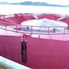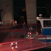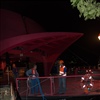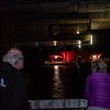 unter der Achereggbrücke in den Alpnacher Arm des Vierwaldstättersee's verschoben. Dazu mussten zuerst die Blütenblätter abmontiert werden. Weiter wurden Teile der Plattform demontiert und auf Lastschiffe verladen. Durch das Fluten der Wassertanks mit Seewasser konnte die Seerose ca. 1 m tiefer gelegt werden. Damit war die Durchfahrt unter der Autobahn-, Eisenbahn-, Autostrasse- und Fusswegbrücke möglich. Durch das Fluten der beiden äusseren Pontons mit einem Fassungsvermögen von 860'000 l Wasser, wird die 500 t schwere Seerose zusätzlich tiefer gelegt. Mindestens 30 cm Freiboard zwischen oberer Wasserlinie und Unterkant Blütenblätter müssen eingehalten werden.
