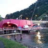 Ein morscher Holzpfahl auf der Seite des ehemaligen Hotel Achereggbrücke fiel mit einem lauten Knall ins Wasser. Alle Vorbereitungen, Rückbau des Gerüste's an der Acheregg-Brücke, verliefen ohne Probleme.